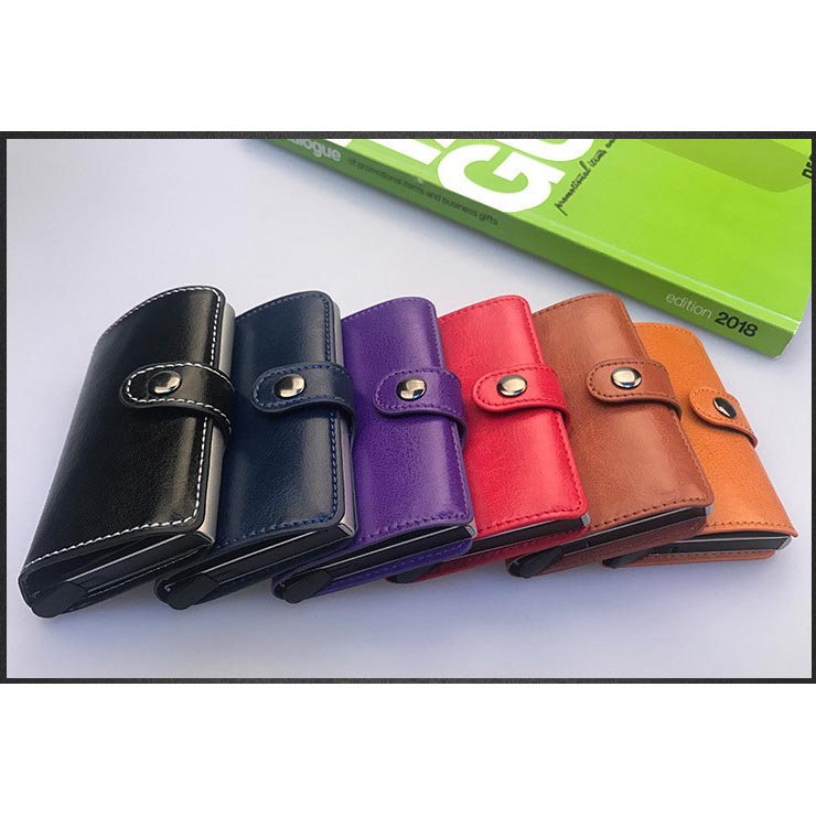 Boasting desain ipis stylish tur sleek, cardholder ieu exudes elegance sarta touch pesona retro. Tata perenah praktisna kalebet kompartemen kotak logam anu diaktipkeun ku tombol eject, sanggup nampung sakitar 5-6 kartu. Salaku tambahan, dua kantong dina dompét nawiskeun rohangan pikeun kartu sanés sapertos lisénsi supir, kartu asuransi, sareng kompartemen kas leutik, nyayogikeun fungsionalitas sadaya-hiji pikeun kabutuhan anjeun.